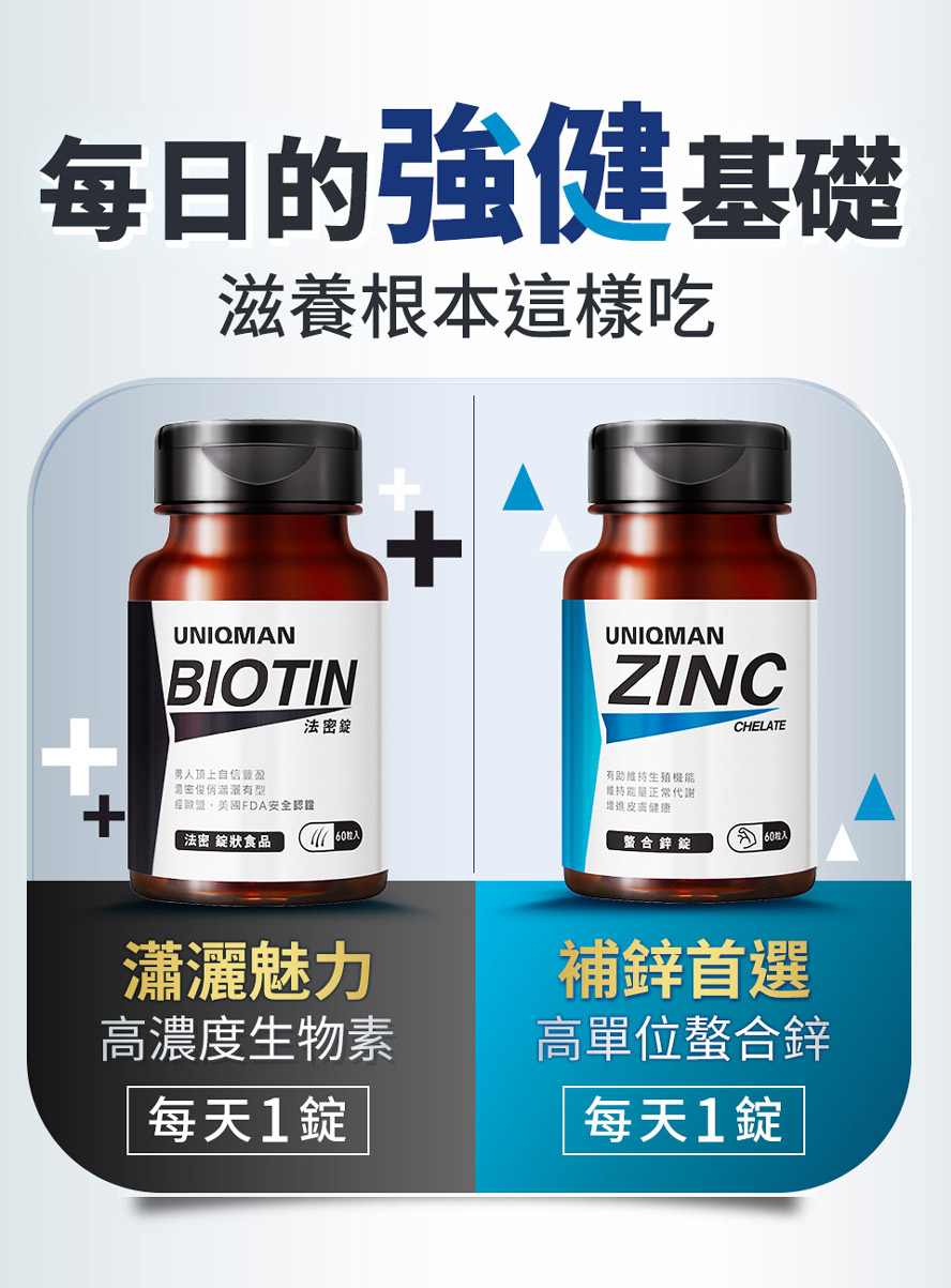 UNIQMAN 強韌札根組 法密錠(60粒/瓶)+螯合鋅錠(60粒/瓶)
